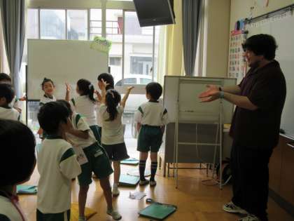 ALTの先生とのやりとりです。ゼスチャーも付けて、楽しく会話をしました。