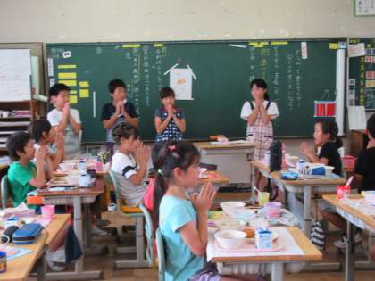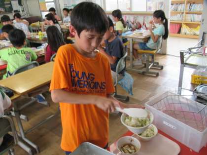 今日のご飯は、旬の枝豆が入った、枝豆ご飯でした。おいしくて、おかわりする子がたくさんいました。