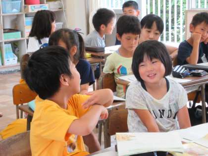 きつねの気持ちが、なぜ、どう変わっていったのか、みんなで読み取っています。