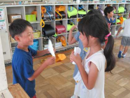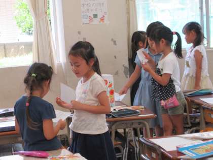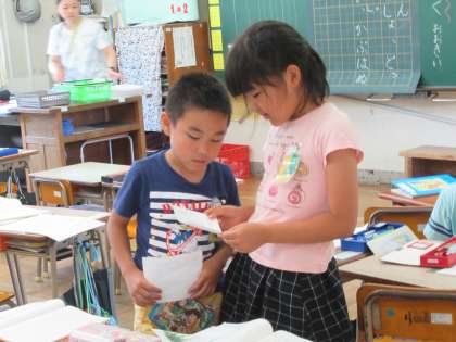 今日は、おじいさんの気持ちを考えて、吹き出しに書きました。お友だちと交流をして、新しい視点に出あいます。