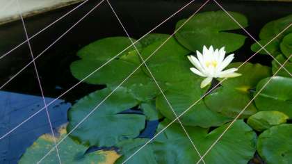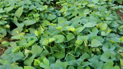 ビオトープの睡蓮が、美しい花を咲かせています。1年生が植えたさつまいもも、葉を繁らせています。