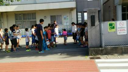 校門では、あいさつボランティアが大勢で、みんなを出迎えます。