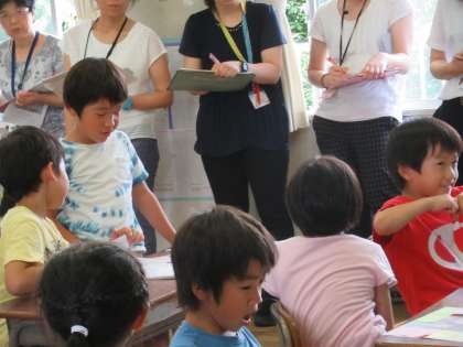 伝えたいことを、みんなで共有しました。四小の先生方も全員参観しています。