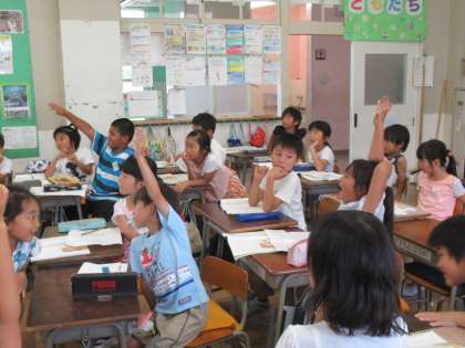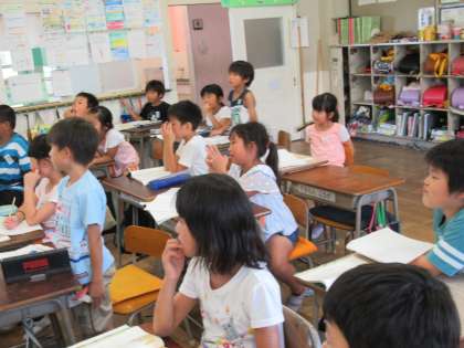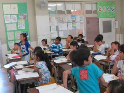 「きつねのおきゃくさま」の学習です。ひよこさんたちに褒められて、ぼおっとしたりうっとりしたりする様子を、体現していました。