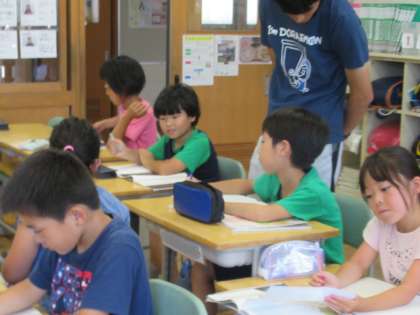 「あらしの夜に」を読んで、はじめの感想を書いていました。真っ暗だからこそ勘違いしたままお話が進むおもしろさを、感じているようです。