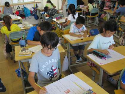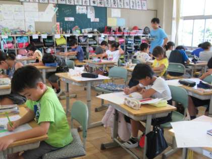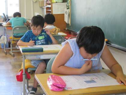 暑い暑い。でも、汗をふきふきテストを頑張っています。