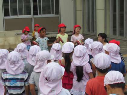 まで先生の支援を受けながらですが、司会や歌のリードを、子どもたちが頑張っていました。