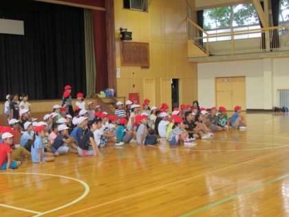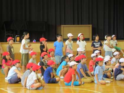 ゲームは、言葉の説明に加えて、実際にやって見せてくれました。楽しくゲームに参加できるよう、みんな、真剣に見ていました。