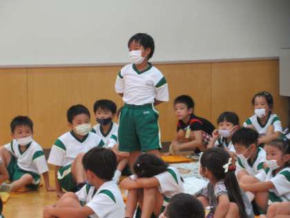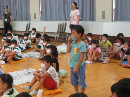 全部きれいにむいて、感想を伝え合いました。皮が何枚もあって驚いたことや、ヒゲの手触りの柔らかさを教えてくれました。