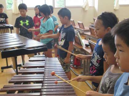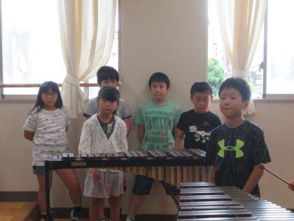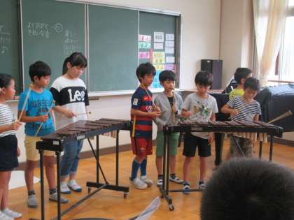 先生のピアノに合わせて、木琴を演奏しました。