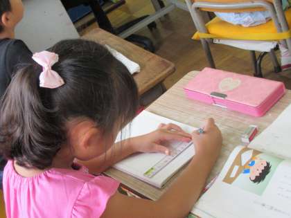 手紙を書きます。誰にかこうかな、何を書こうかなと、構想を立てていました。表を作るのに、定規を上手に使っていました。
