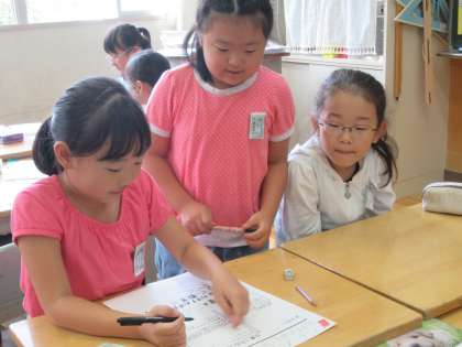 係の仕事について相談して、掲示用のカードを作りました。