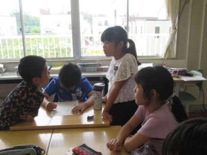 なかよし遊びの会について、班ごとに計画を立てていました。