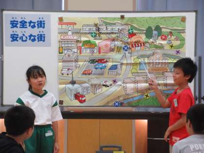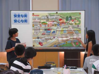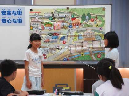 班で相談して見つけた危険箇所を発表しました。講師の先生からは、こうして危険箇所を知り、その理由や危険回避について考えることが、自分の身近な危険から身を守ることにつながると、教えていただきました。