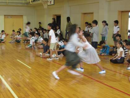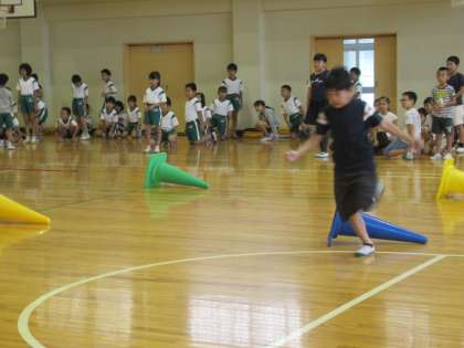 みんなで障害物リレーをして、楽しみました。