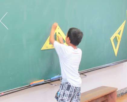 角の学習です。今日は、三角定規を使って、直角をかきました。