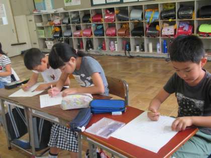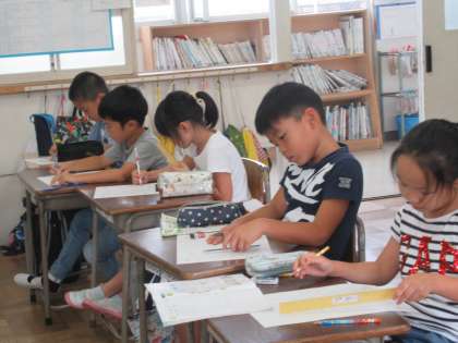 ドットを直線でつないで、形をつくりました。定規の使い方に慣れるまで、直線をひくという作業も、子どもにとっては難しいことなのです。