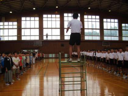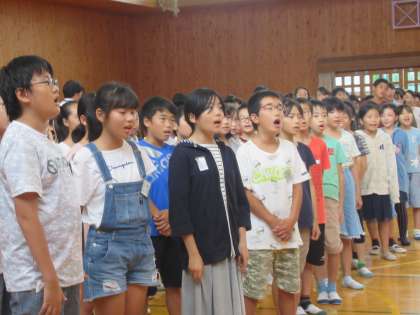 四小の校歌を、小中学生みんなで歌いました。中学生が四小校歌の伴奏をしてくれたこと、歌詞を覚えていて素晴らしい歌声を聴かせてくれたことに感動しました。