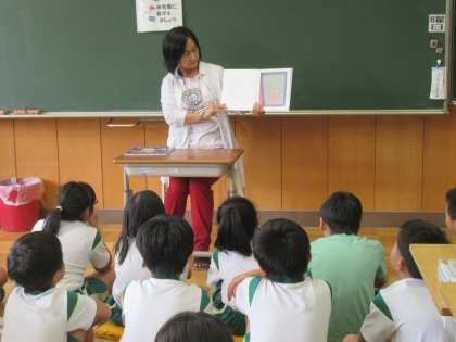子どもたちは、真剣な表情で挿絵を見つめています。