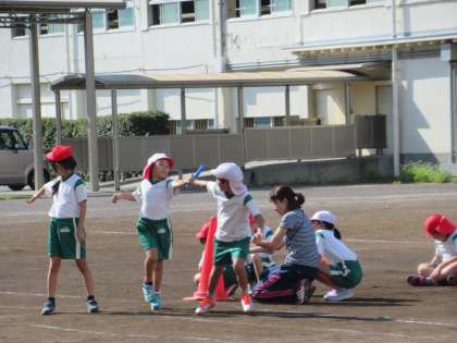 リレーのバトン練習、リレー、長縄と、それぞれに頑張っています。