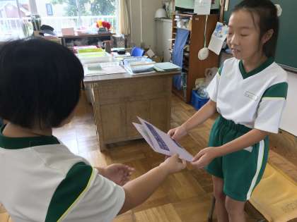 みんなからのメッセージカードを受け取ると、とても嬉しそうな顔をしていました。