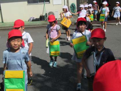 今日は、2年生が生活科の時間を使って、2回目のまちたんけんに出かけました。今回は、すてきを伝えるツアーに組み込みたい、お気に入りの場所を探検します。
