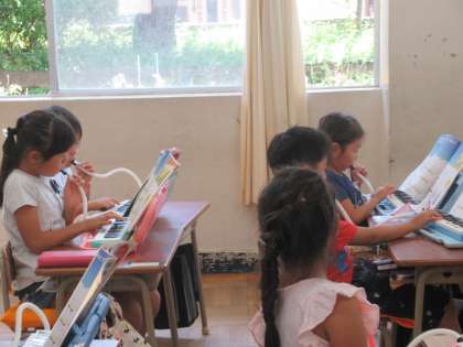 島(机のかたまり)ごとに、鍵盤ハーモニカを演奏しました。