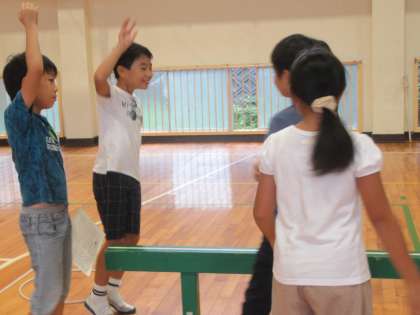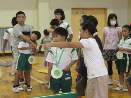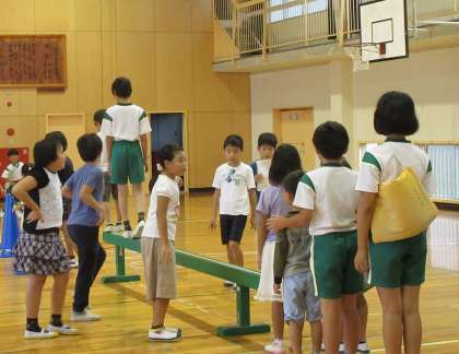 体育館でも、工夫された遊びが展開しています。4年生が説明を頑張り、6年生が1年生のお世話をしてくれています。