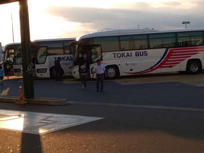海老名サービスエリアを出ます。今現在、予定より15分程度の遅れまで回復しましたが、サービスエリアの出口が渋滞しているようです。
