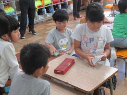 ばらばらになった挿絵を並べ直して、お話を作る学習をしました。