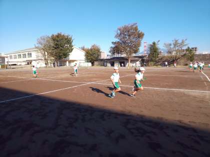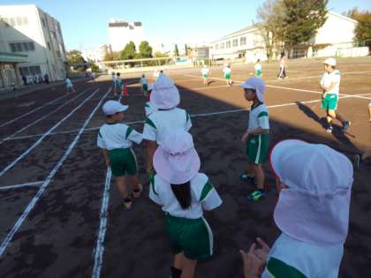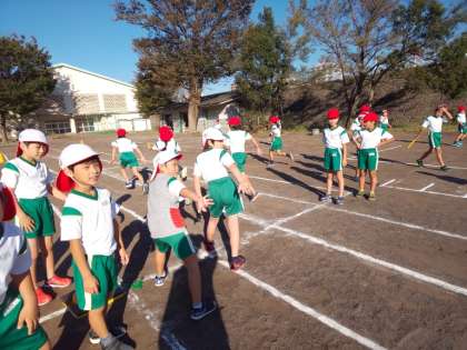 今日は、3.4年生のリレー大会が予定されています。クラスごとに、バトン練習をしています。