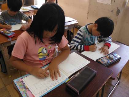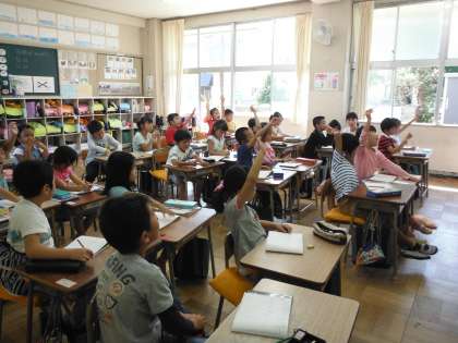 問題づくりをしました。みんなの意見をつなげて、お話をつくりました。ノートにも、ていねいに書けています。