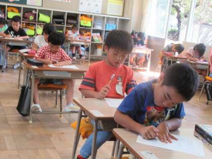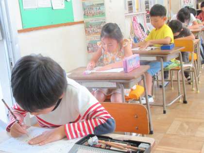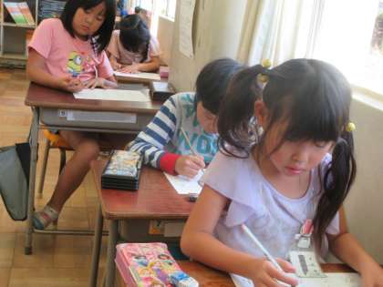 カタカナテストをしています。ひらがなの学習に始まり、もうカタカナもすべて学習し終わりました。