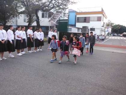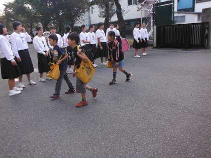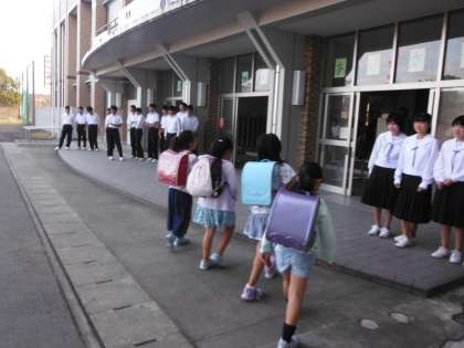 今年度3回目の小中合同あいさつ運動が行われました。これまで正門と南門だけでしたが、今日は児童玄関も加わり、4カ所に分かれて明るいあいさつを交わしました。いつも以上に多くの中学生が参加してくれました。