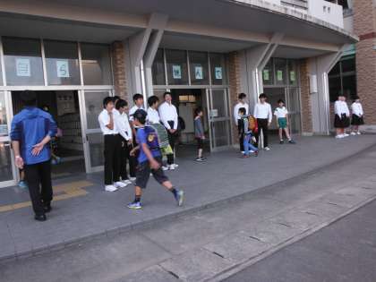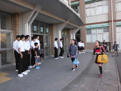 今年度3回目の小中合同あいさつ運動が行われました。これまで正門と南門だけでしたが、今日は児童玄関も加わり、4カ所に分かれて明るいあいさつを交わしました。いつも以上に多くの中学生が参加してくれました。