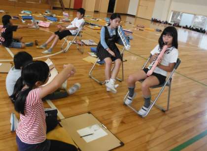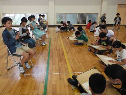 体育館で学年一斉に絵を描く会を行いました。二人組や三人組となり、交替でモデルになったり、絵を描いたりしました。沼津市の生涯学習課から学習ボランティアの先生を迎え、構図や表現の仕方など、たくさんアドバイスをいただきました。