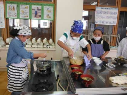 味噌汁の具は、各班ごとに違うものでしたが、だしは「にぼし」です。本格的な仕上がりとなりました。