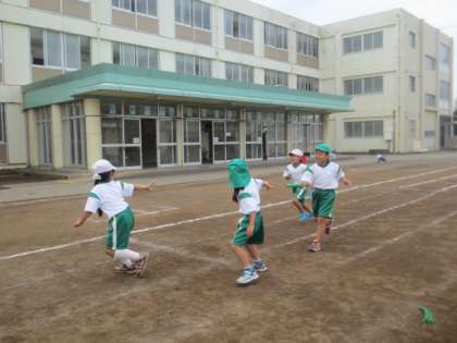 今日、初めて3クラス合同でリレーの勝負をやりました。これから本番に向けて練習を重ねていきます。
