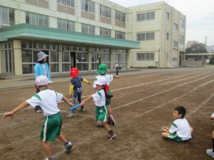 今日、初めて3クラス合同でリレーの勝負をやりました。これから本番に向けて練習を重ねていきます。