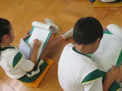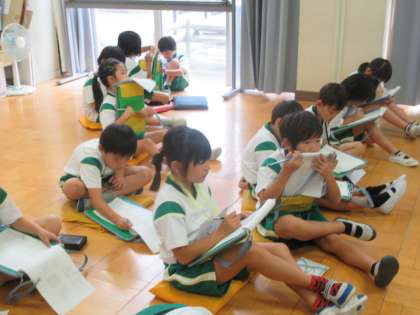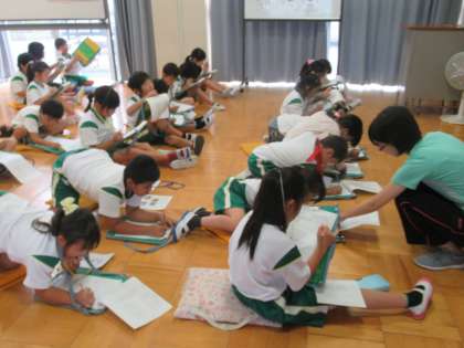 学習の終わりには、振り返りをします。どんなふうに活動できたか、自分の学習を、自分で評価しています。