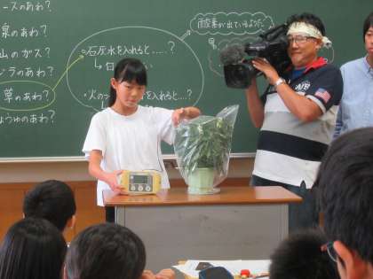 植物が二酸化炭素を吸収して酸素を発生することなどを、実験で確かめました。