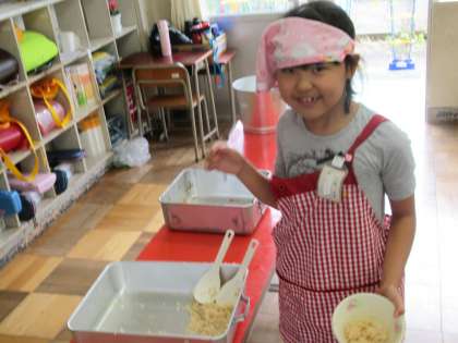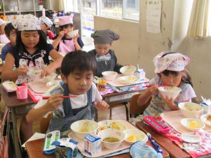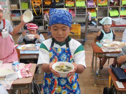 みそ汁も、さくらご飯も、おいしいね。おかわりいただきます。