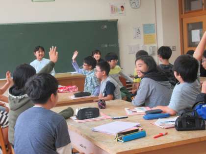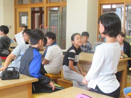隣の教室でのテレビ収録の邪魔にならないよう、6年2組は特別教室で朝の会をしていました。