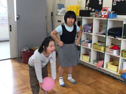 休み時間は、みんなで仲良く遊んだり、楽しくおしゃべりをします。今日は風船バレーに熱中する子もいれば、連休にあるサッカーの試合の話題で盛り上がっている子もいました。