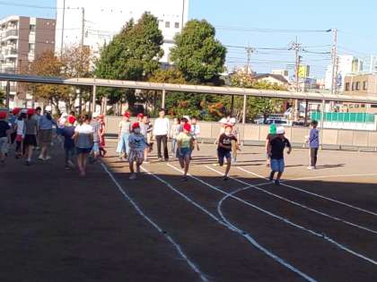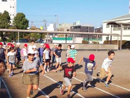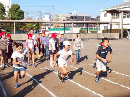 運動場には、子どもたちの元気な姿があります。今朝も、朝のトレーニングに励んでいます。