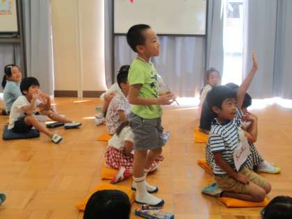 ハロウィンを題材に、英語の学習をします。ミイラやドラキュラは英語じゃなかったんだと、子どもたちはびっくりしていました。
