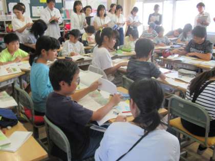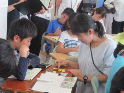 筆者の伝えたかった黒部とトロッコ電車の気力が伝わる「本の帯」をつくろうと、先生の助けを借りながら、一人ひとりが懸命に考えました。