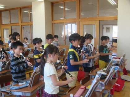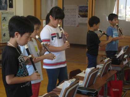 3年生になって始まったリコーダーの学習。今日は、高い「レ」を習いました。表現できる音域が広がっていきます。