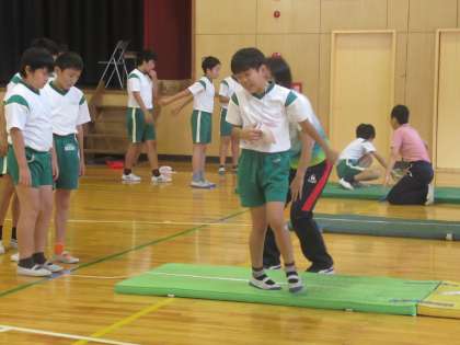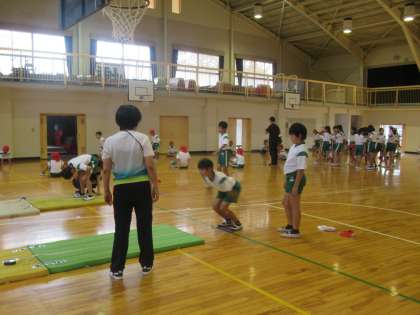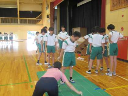 体育館でも、立ち幅とび・反復横跳び・上体起こしの測定が行われています。