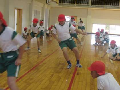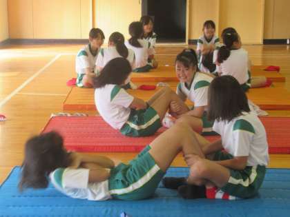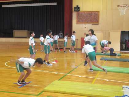 体育館でも、反復横とび・立ち幅とび・上体起こしの測定が行われています。
